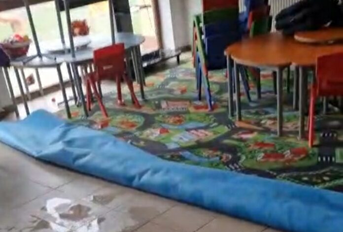 Ploile abundente din ultimele ore au afectat grădinița din comuna Cilibia, județul Buzău. Apa s-a infiltrat prin acoperiș și a inundat mai multe săli de clasă. Cursurile au fost suspendate pentru toți cei 55 de preșcolari.